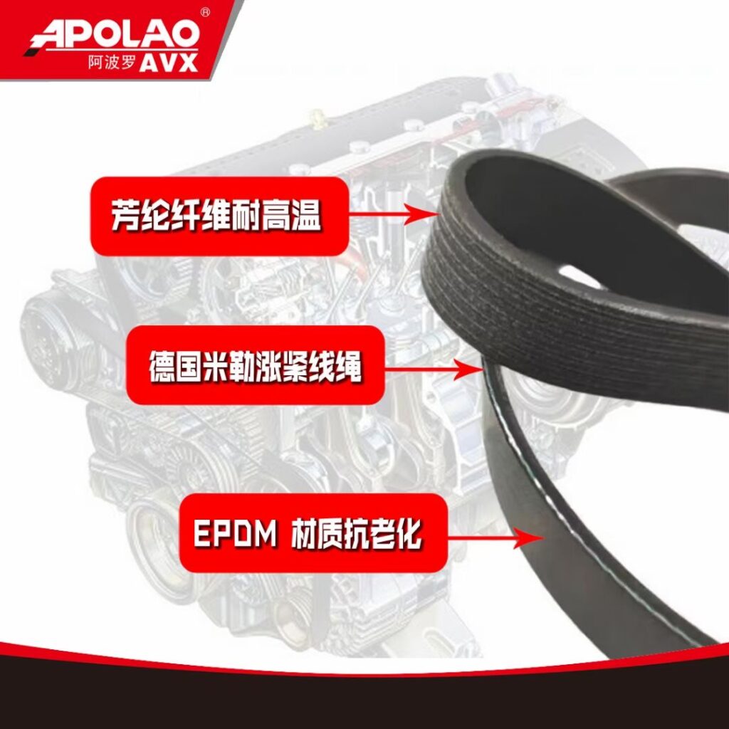 We offer our own brand of belts, “Apolao.” We can also provide belt finishes in Samsung, Bando, Gates, and other finishes. Sizes range from 3PK to 30PK. Lengths can be customized up to 5 meters. We can also assist you in developing your own belt brand.
