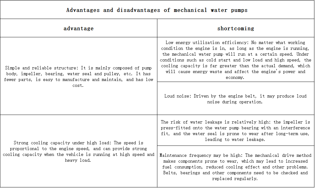 The following two pictures are about the advantages and disadvantages of mechanical water pumps and electronic water pumps